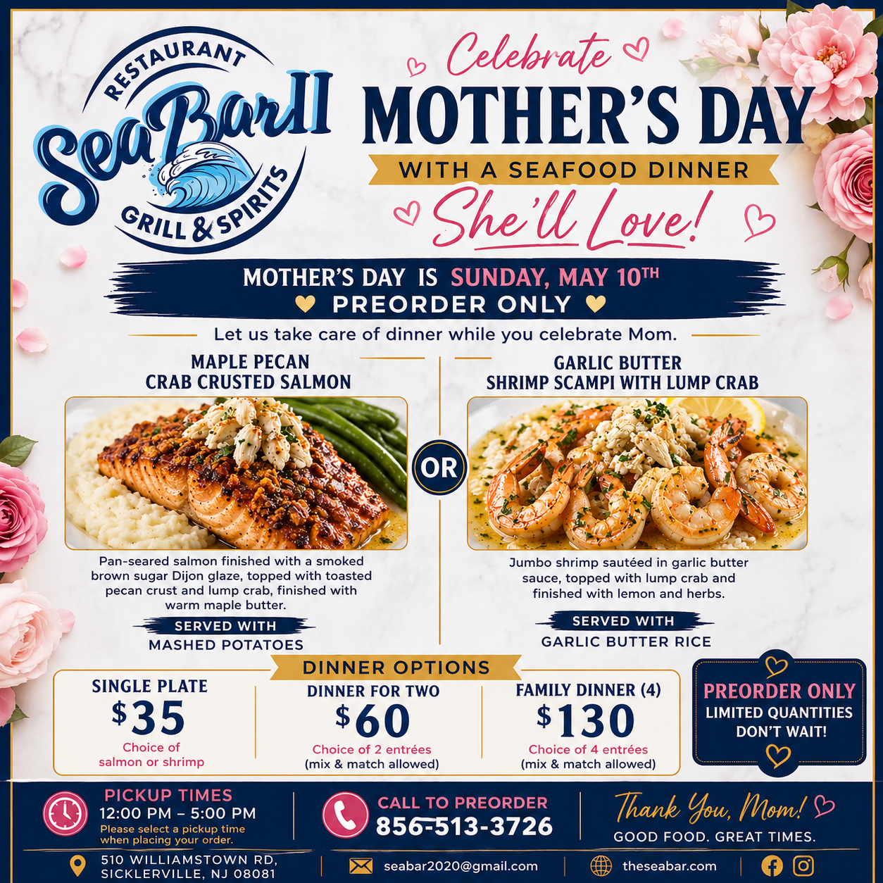 Jumbo shrimp sautéed in garlic butter sauce, topped with lump crab and finished with lemon and herbs.